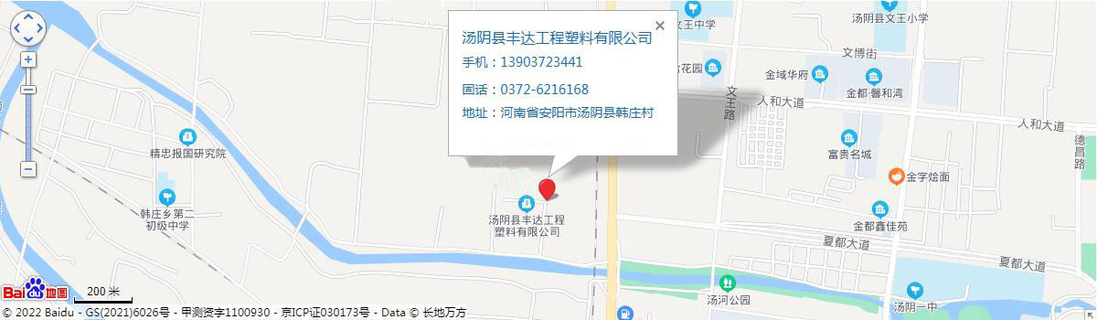 汤阴县丰达工程塑料无限公司主导产物为份子量聚乙烯(UHMW-PE)I、II、III板材、棒材和尼龙托辊。汤阴县丰达工程塑料无限公司位于河南省汤阴县城北汤河岸边,紧邻京广铁路和107国道。